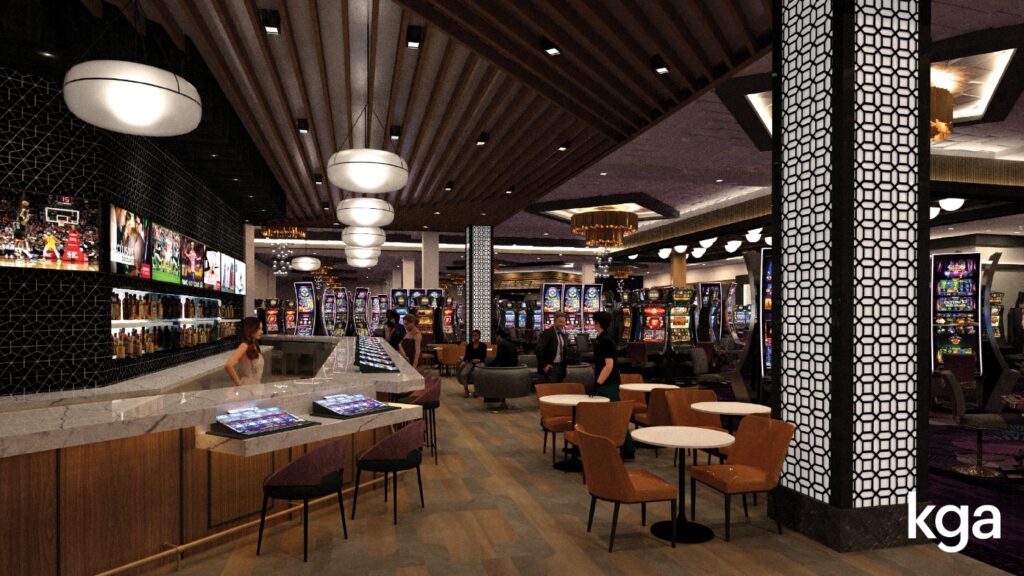 The Iowa Tribe of Oklahoma Harrah’s Casino is a ground-up gaming and entertainment venue featuring a 48,500-square-foot open-plan casino gaming floor designed for easy navigation. Centrally located bars and restaurants are positioned to create dynamic, high-energy focal points within the architecture. The interior uses warm earth tones and natural materials to honor Oklahoma's heritage, while the exterior maintains Harrah’s modern brand standards.